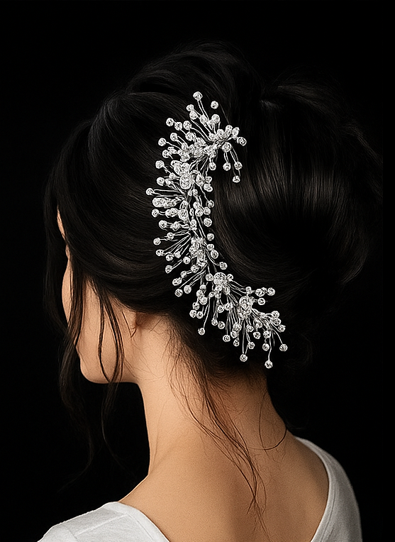Elevate your special occasions with the Crystal Elegance Combo Set (3 pcs) – a timeless blend of sophistication and sparkle. This beautifully crafted set includes a delicate white tiara, a shimmering barfi-style necklace, and a classic single-line bracelet. Designed with high-quality silver plating and dazzling Cubic Zirconia (American Diamonds), this set brings a touch of luxury to every celebration.