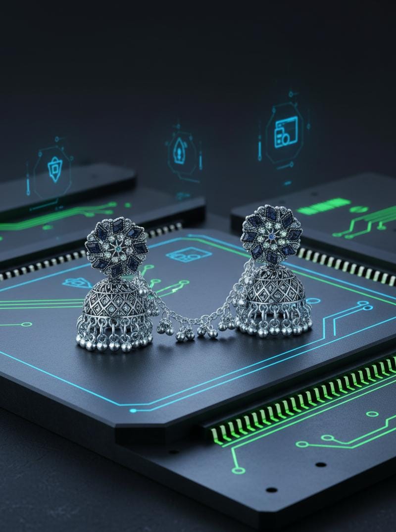 Bring timeless elegance to your look with these exquisitely crafted Bahubali-style silver jhumkas. Designed with intricate detailing and a royal finish, these earrings add the perfect touch of tradition and grandeur to any outfit.